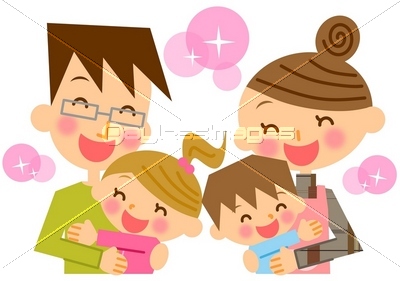 仲良し親子家族イラスト 娘と息子と父と母の仲良し親子家族イラスト